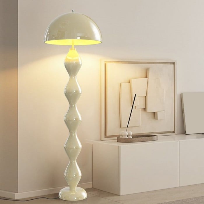 Diese retro-inspirierte, pilzförmige Stehlampe strahlt einen nostalgischen und warmen Charme aus. Das einfache, knospenförmige Design der Stehlampe ist von der klassischen Pilzform inspiriert, wobei der Lampenschirm elegant geschwungen ist und an ein nostalgisches Kunstwerk erinnert. Der schlichte Lampenschirm strahlt ein sanftes Licht aus und schafft eine gemütliche und warme Beleuchtung, die perfekt für Wohnzimmer, Schlafzimmer und Leseecken ist.